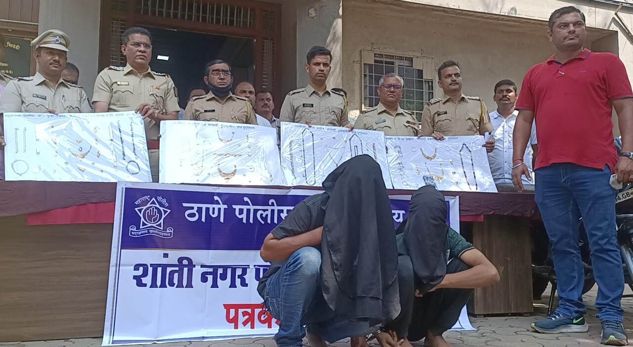 पुलिस के अनुसार शांतिनगर पुलिस स्टेशन क्षेत्र में सेंधमारी एवं मोटर साइकिल चोरी की घटनाएं दिनों दिन बढ़ती जा रही थी| जिसको लेकर डीसीपी योगेश चव्हाण ने शहर के सभी पुलिस स्टेशनों के अधिकारीयों एवं ठाणे अमलदार को शहर में बढ़ रहे अपराधों पर रोक लगाने के लिए पुलिस की गस्त बढ़ाने एवं अपराधियों की धरपकड़ करने का आदेश दिया था| जिसके तहत पूर्व विभाग के एसीपी प्रशांत ढोले के मार्गदर्शन में शांतिनगर पुलिस स्टेशन के सीनियर इंस्पेक्टर शीतल राउत ने पुलिस अधिकारियों की टीम बनाकर पुलिस गस्त बढ़ाने का आदेश दिया था| जिसके तहत पीएसआई नीलेश जाधव की टीम द्वारा तकनीकी आधार पर की गई जांच में रहमतपुरा के शातिर अपराधी नदीम खान (18) का नाम सामने आया| जिसे निजामपुर पुलिस ने चोरी के एक मामले में गिरफ्तार किया था| इस समय वह कल्याण स्थित आधारवाड़ी जेल में न्यायायिक हिरासत में था| पुलिस ने आधारवाड़ी जेल से उसे हिरासत में लेकर जब पूछताछ किया तो सेंधमारी के 11 मामले उजागर हुए| इसी तरह पीएसआई रवींद्र पाटील की टीम ने गैबीनगर के अयूब शेख (40) को ठाणे जेल से हिरासत में लेकर जब पूछताछ किया तो मोटर साइकिल चोरी एवं राहजनी का मामला उजागर हुआ| पुलिस की टीम ने दोनों लोगों के पास से 16.92 लाख रुपए का माल,371 ग्राम सोने का जेवर एवं 750 ग्राम चांदी और मोबाइल सहित कुल 17.44 लाख रुपए का माल बरामद करके जब्त कर लिया है|